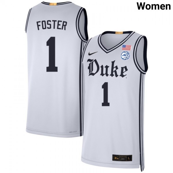 • Caleb Foster Blue Devils #1 College Basketball University Women's Jerseys - Team White